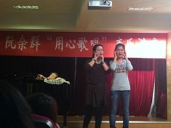当晚参加讲座的有福州市文化新闻出版局胡南副局长,福州市人大常委会副主任邹永平及音乐学院的院长、书记、声乐教研室全体教师和全体同学。讲座以访谈互动的形式进行,阮余群用生动的语言给同学们讲述了自己的求学历程、演出体验、学习方法,深入浅出的讲解了声乐专业学习的很多技术性难题的解决方法。还分别给10级陈宁、陈芃、卢涛、11级王锦州、12级廖羽彤5位同学进行了一对一的声乐指导。讲座现场气氛轻松、欢快,阮老师精彩的演讲、示范博得了整场同学的阵阵欢呼。会后音乐学院院长邹敏华教授为阮余群和李爽(国家一级演员,中央歌剧院歌剧青年男高音歌唱家)颁发了客座教授的聘书,他们也向音乐学院赠送了一套《精选意大利语歌曲集》作为礼物。最终11级王锦州同学还被选中参加明晚在九日台音乐厅举办的阮余群“喜庆十八大,放歌故乡行”音乐会。