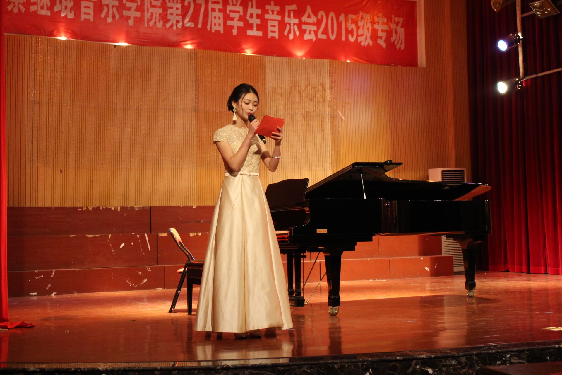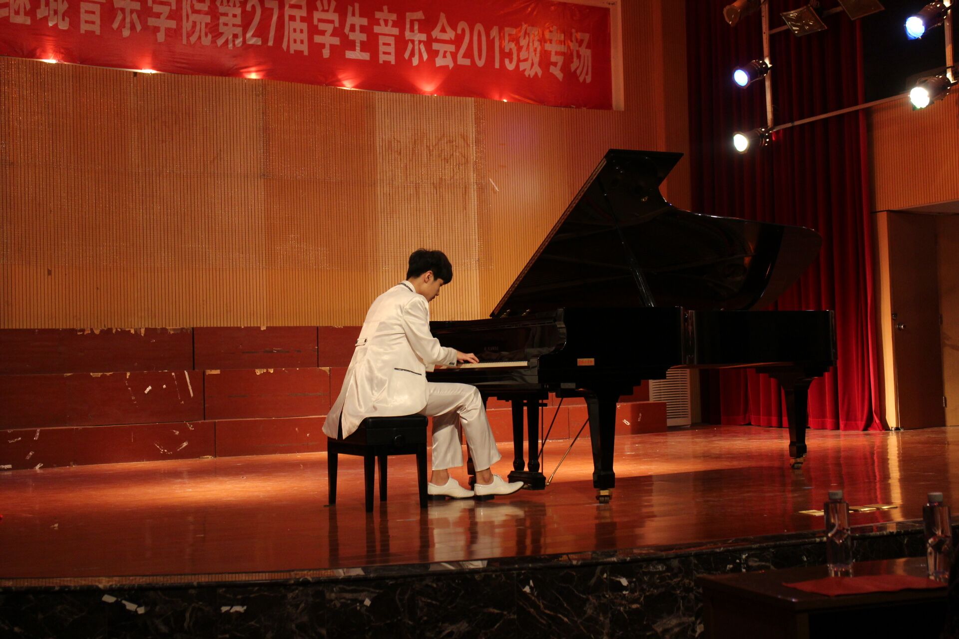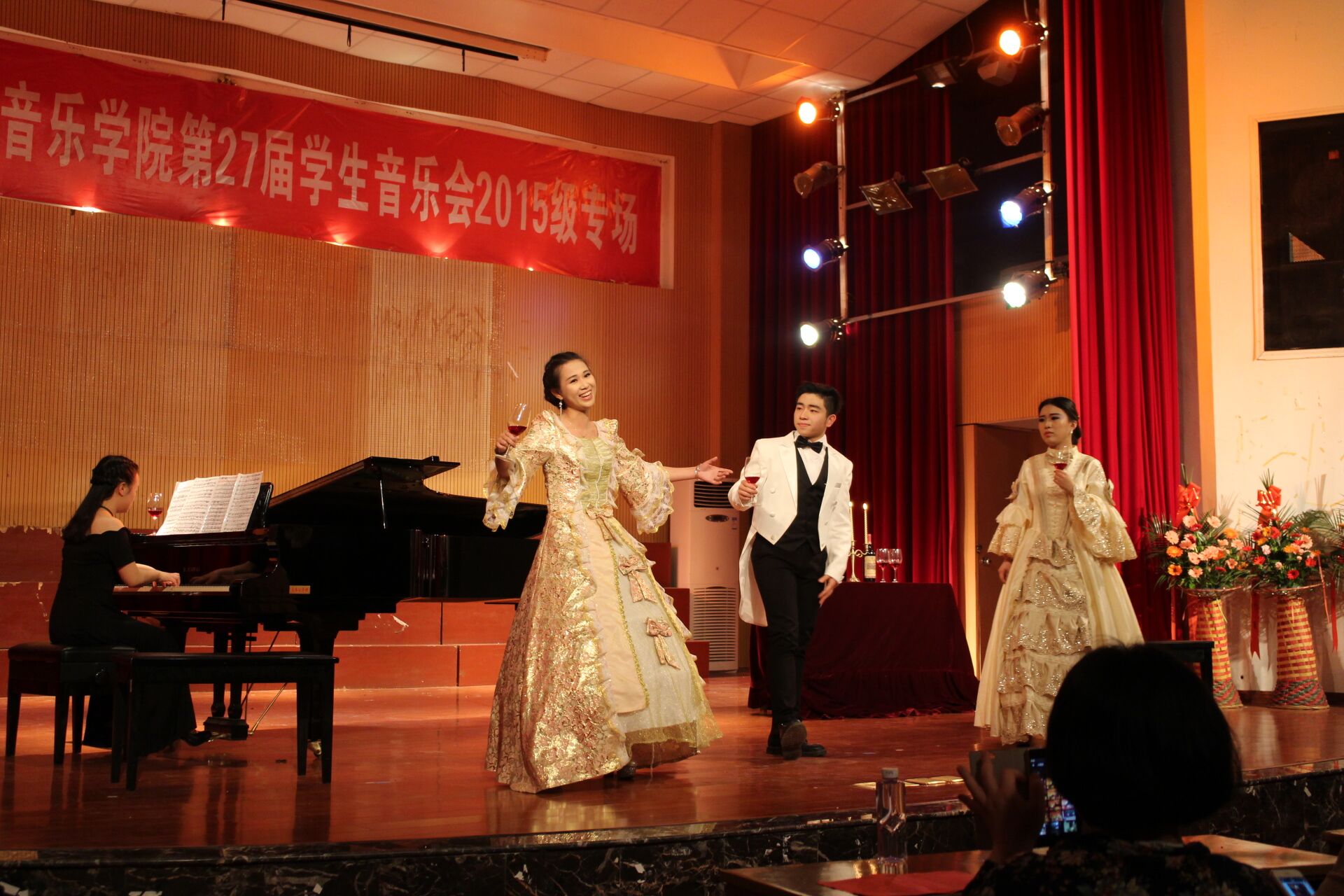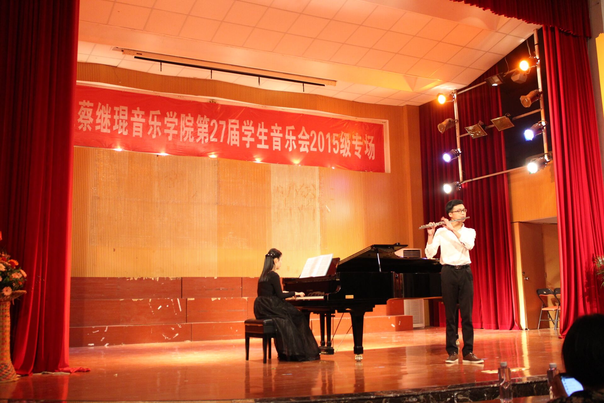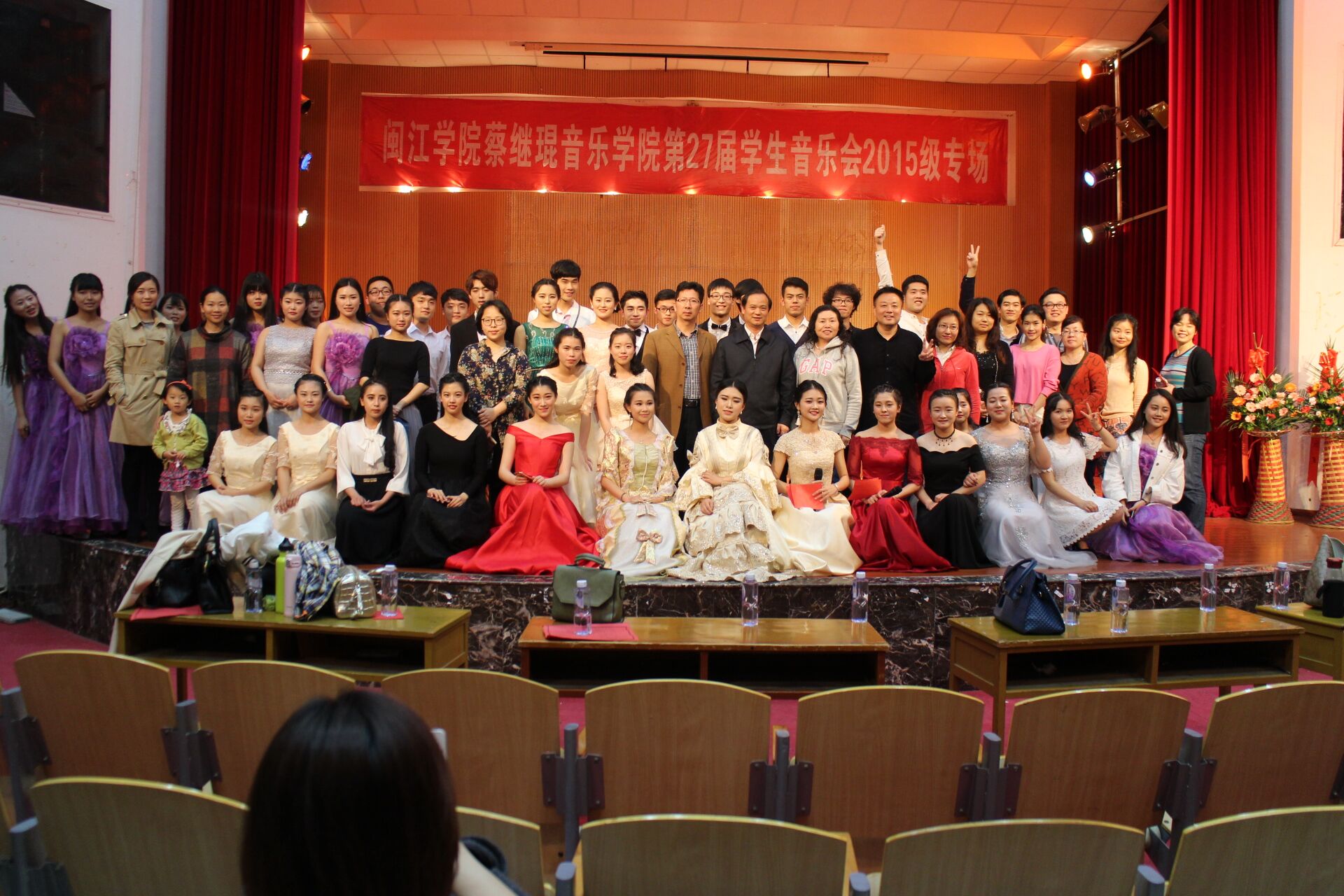 2016年4月25日晚,音乐学院首山校区李刚堂座无虚席,2015级音乐学专业承办的第27届学生音乐会2015级专场在此拉开帷幕。 thisav 副校长李新贤莅临音乐会现场,音乐学院党政领导和全体教师及学生代表200多人一起观看了音乐会。当晚还有福建船政交通学院和福建警察学院的部分同学也应邀享受了这一场视听盛宴。