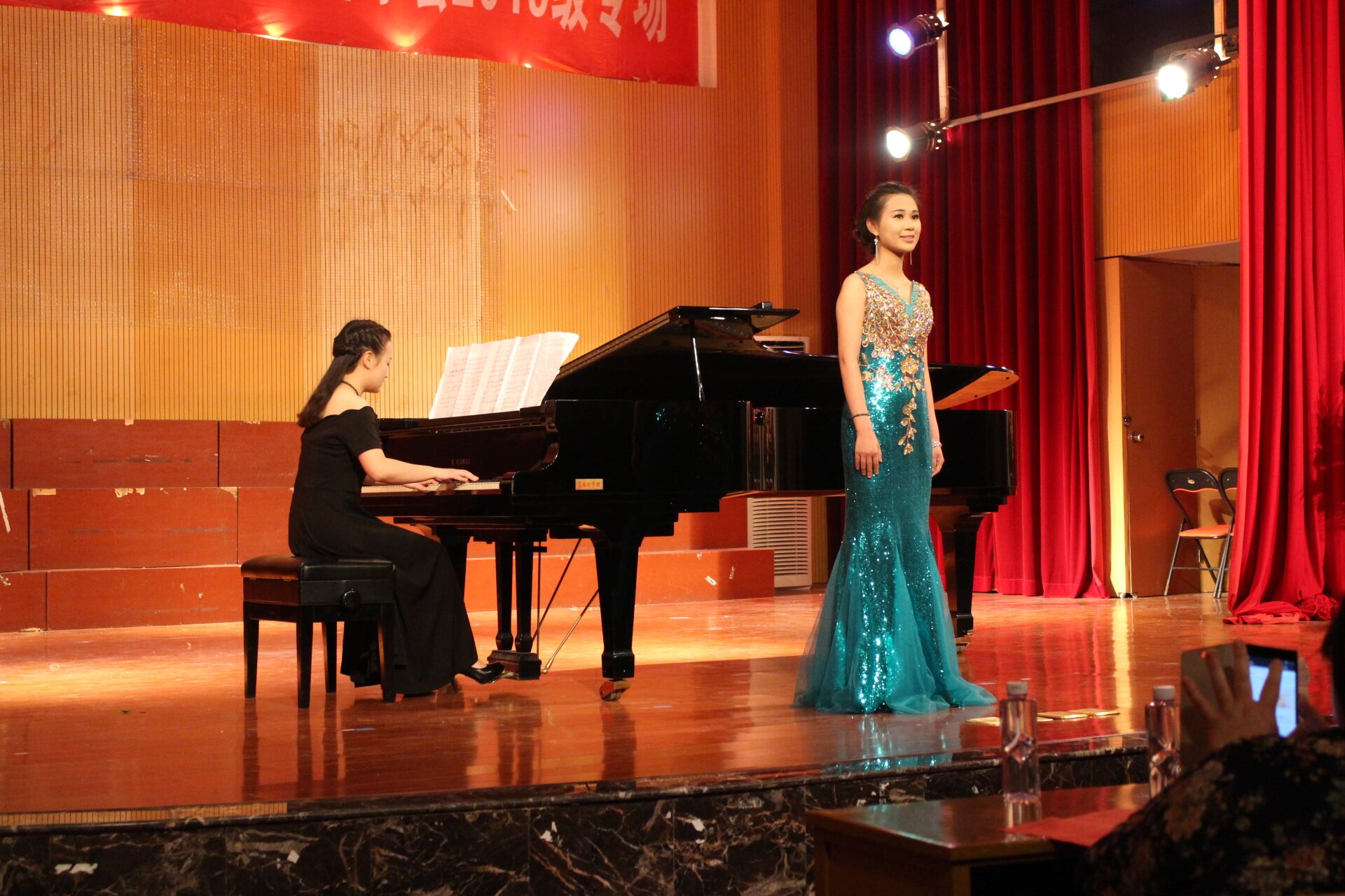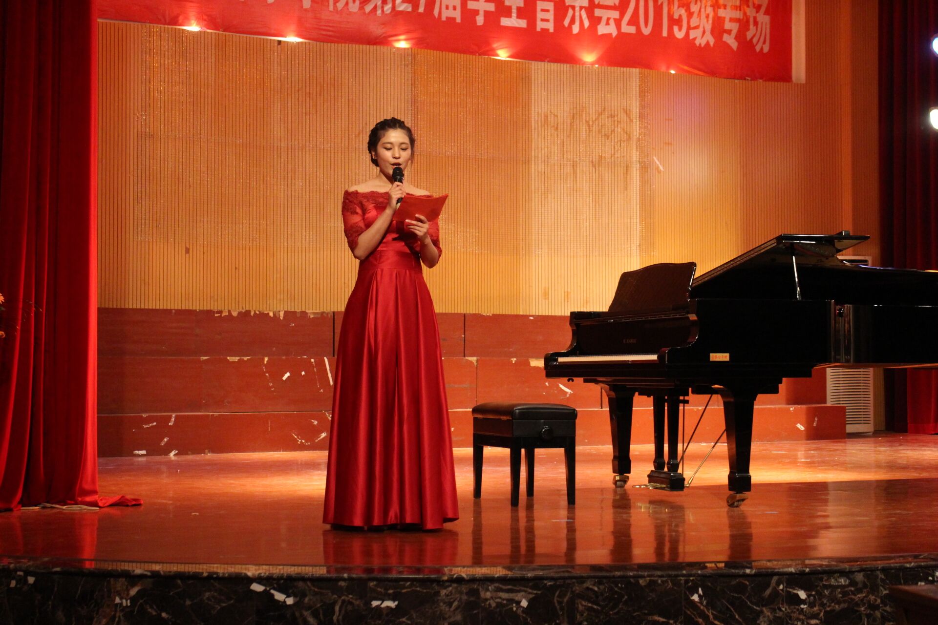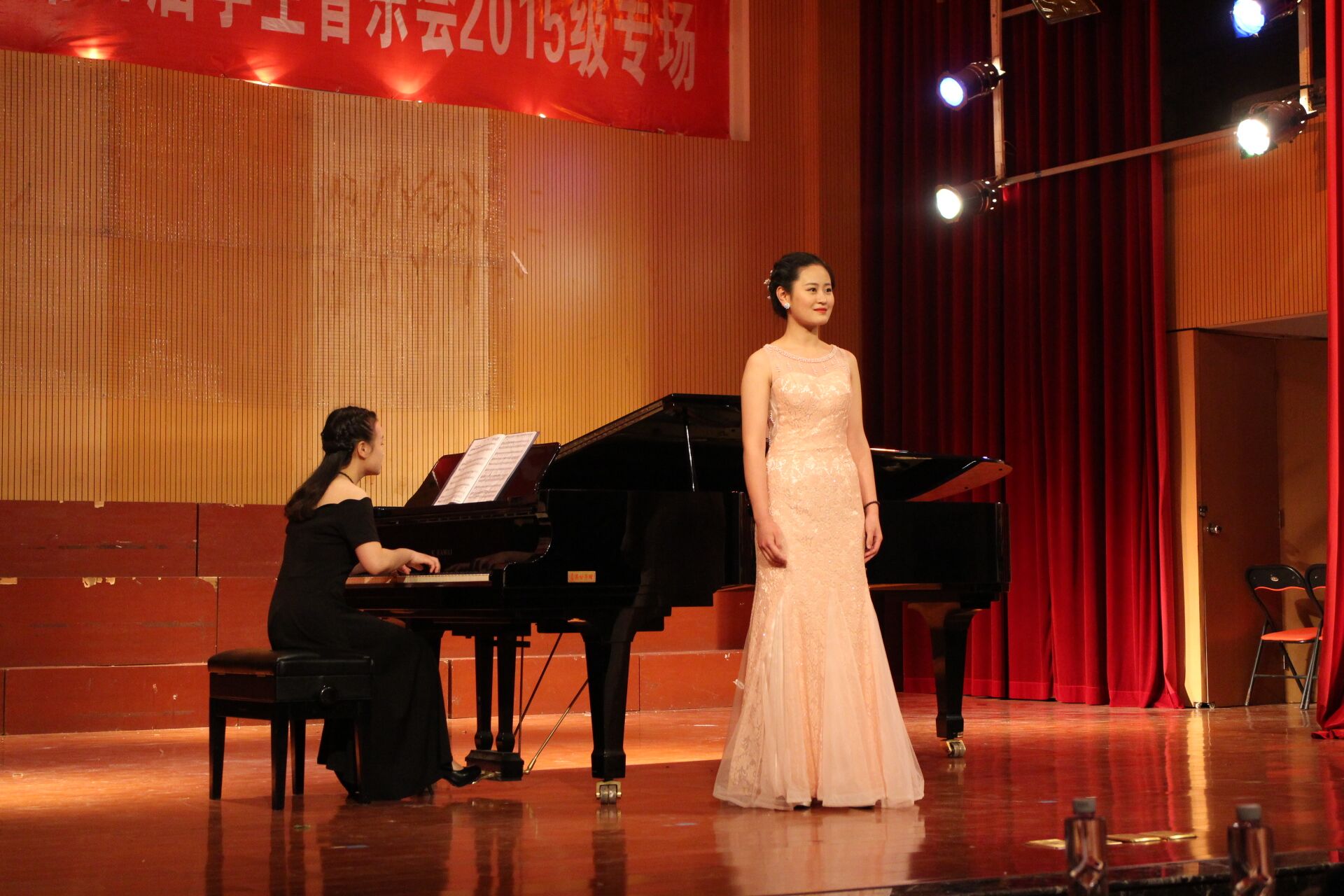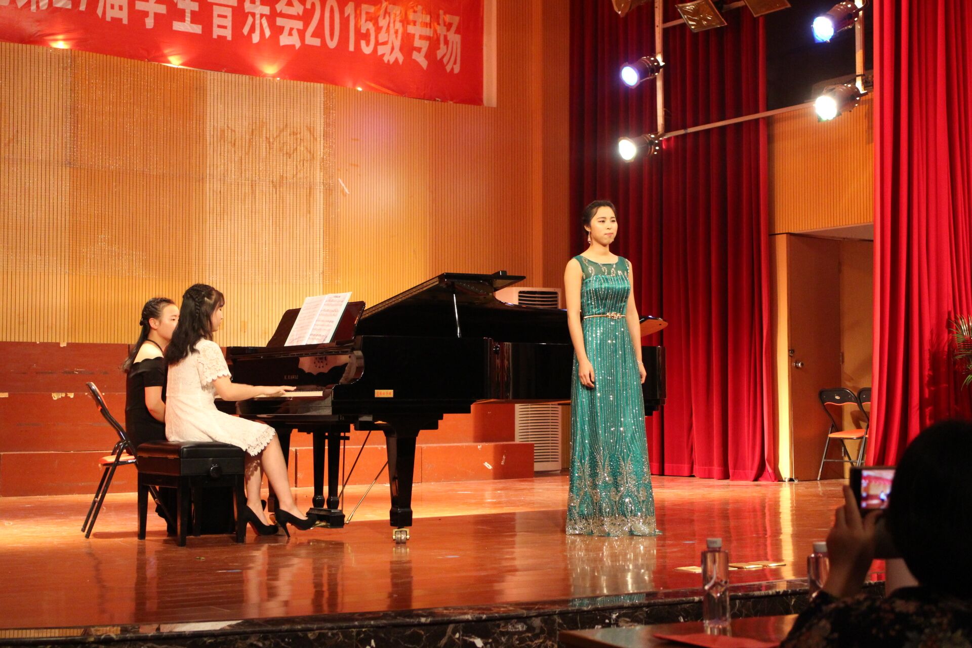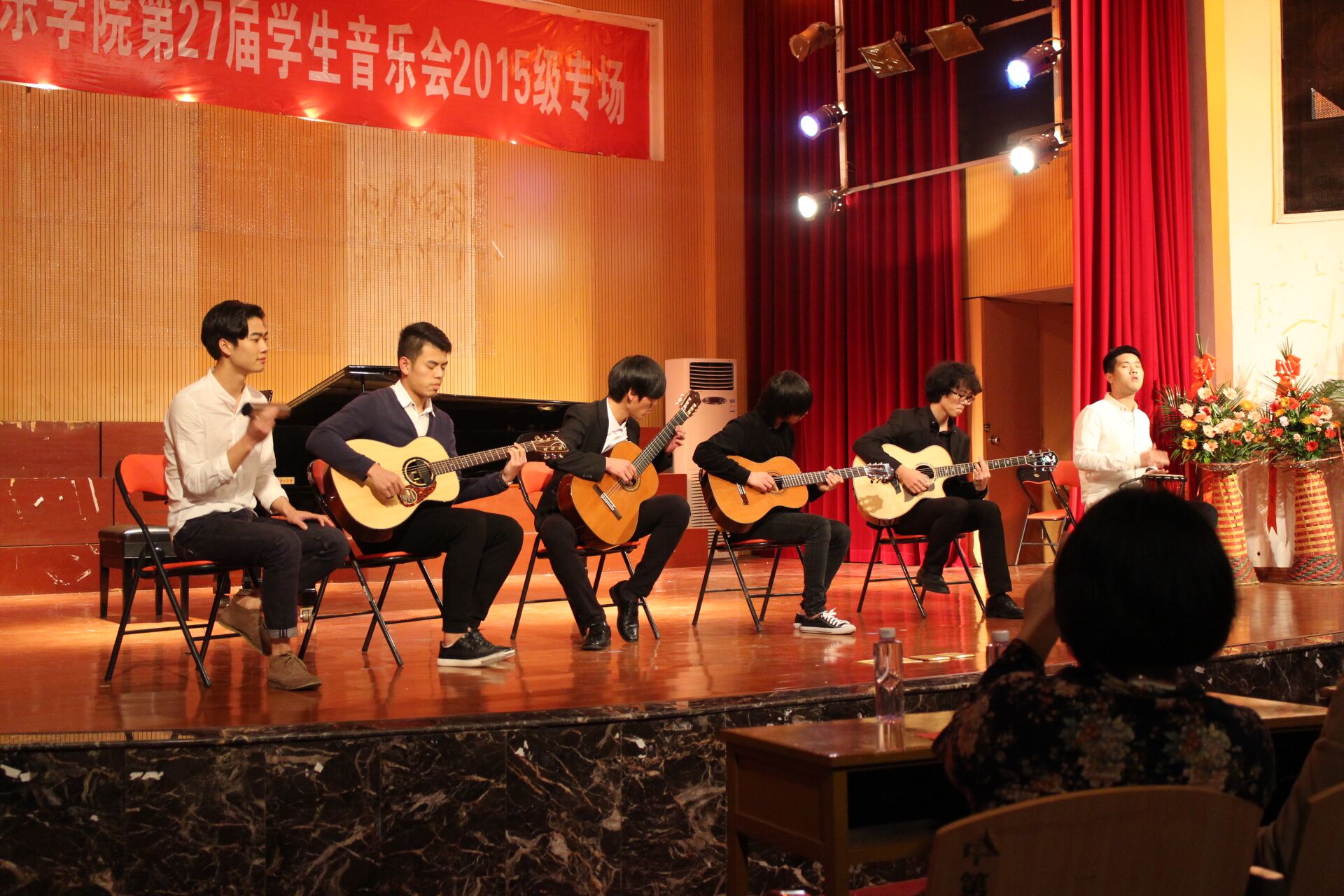 2016年4月25日晚,音乐学院首山校区李刚堂座无虚席,2015级音乐学专业承办的第27届学生音乐会2015级专场在此拉开帷幕。 thisav 副校长李新贤莅临音乐会现场,音乐学院党政领导和全体教师及学生代表200多人一起观看了音乐会。当晚还有福建船政交通学院和福建警察学院的部分同学也应邀享受了这一场视听盛宴。