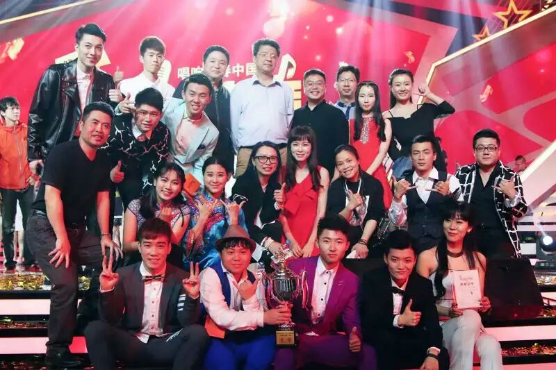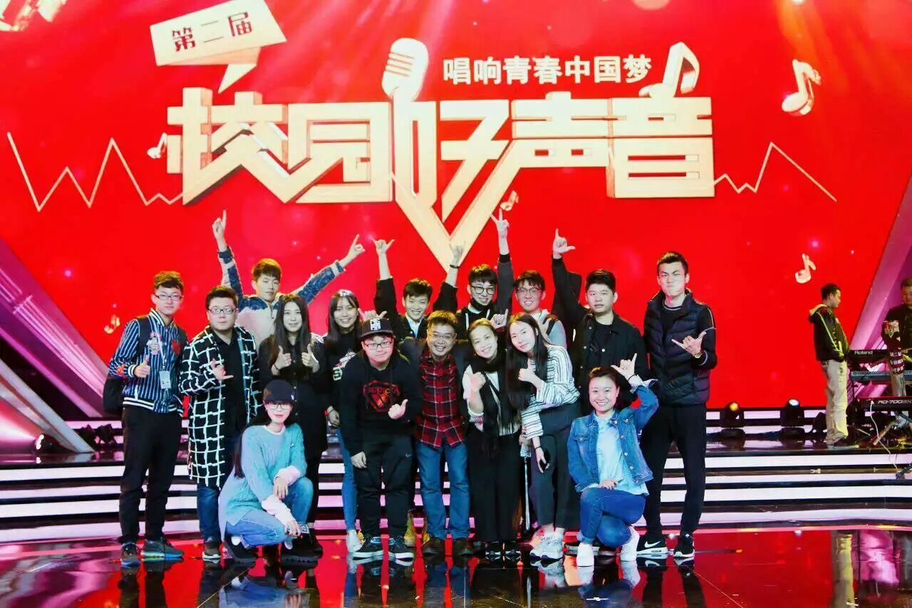 图:全国第二届校园好声音6强比赛最终成绩与队员合影(20160414)