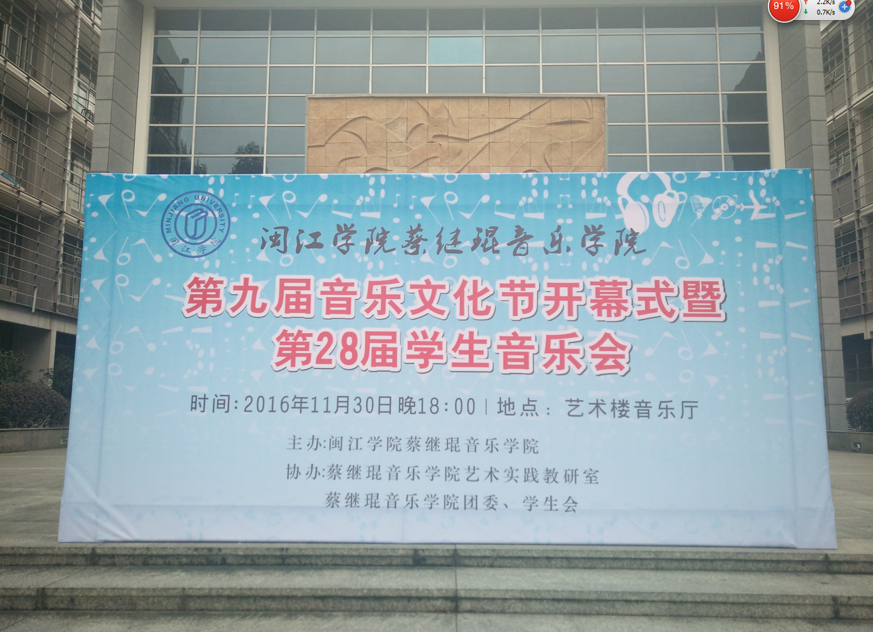 2016年11月30日晚,音乐学院第九届音乐文化节开幕式暨第28届学生音乐会在艺术楼A308音乐厅举办。音乐党政领导、各教研室教师、音乐学院各级学生代表及校团委、学生会领导与学生干部代表200多人到场观看了演出,现场座无虚席,气氛隆重而热烈。