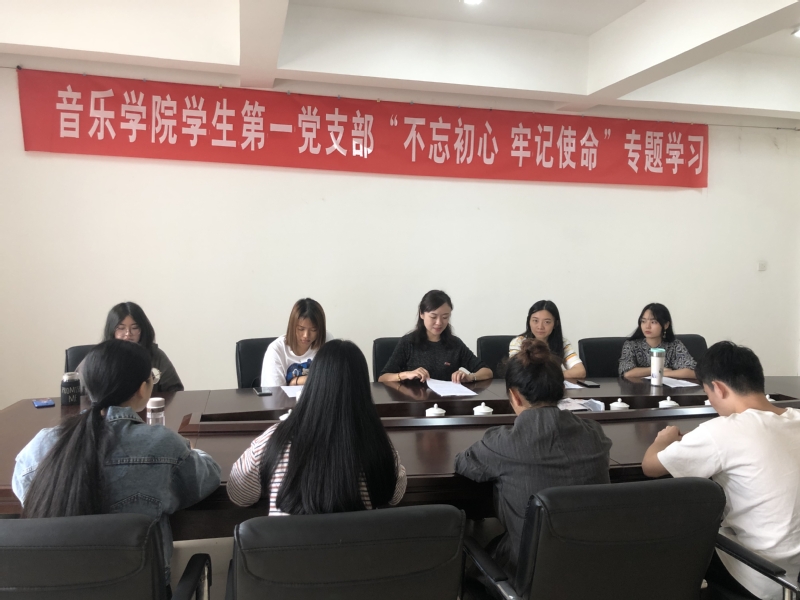为加强党支部“不忘初心、牢记使命”主题教育的专题学习,1018日上午,音乐学院党委王艳婷副书记前往首山校区,和学生第一党支部的党员一起开展了六个专题的学习。