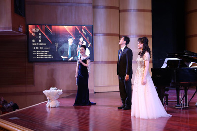 白维博士和陈乃嘉博士是音乐学院近年引进的优秀人才,现在分别担当音乐学院钢琴教研室主任和声乐教研室主任。两位台湾同胞分别毕业于美国明尼苏达大学和美国印第安纳布鲁明顿分校。当晚,白维博士精湛的演奏技巧和对贝多芬作品独特的理解力化作一串串流畅的音符在音乐厅回响;陈乃嘉博士高亢的嗓音和优美的演唱,从欧洲歌剧咏叹调到中国艺术歌曲,展示了其全面的音乐素养和声乐表演能力。两位博士的精彩演出获得在场观众的阵阵掌声与喝彩。