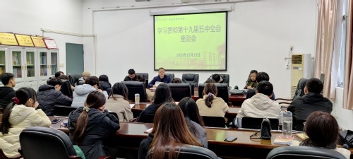 为深入学习贯彻十九届五中全会精神,12月15日中午,音乐学院在艺术楼会议室召开学习党的十九届五中全会精神座谈会,会议由学院党委副书记李友山主持,院团委书记罗强、各年级辅导员、全体学生党员、主要学生干部等四十余人参会。