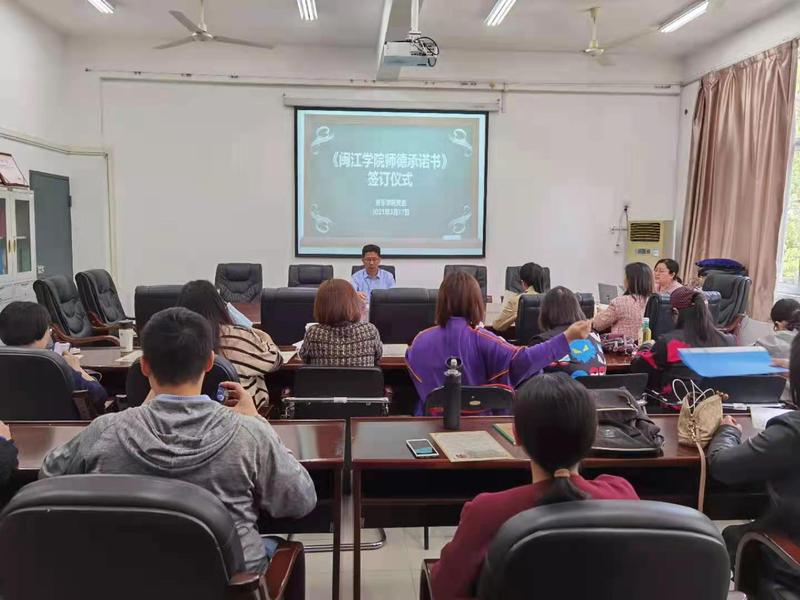 3月10日下午,党委书记杨小高带领全体教工学习解读《蔡 thisav 教师师德师风考核办法(试行)》的内容、师德师风警示案例学习;3月17日下午,学院组织全体教职工学习学校教师工作部7号文件《关于签订师德承诺书和建立师德档案的通知》精神,现场签订了师德承诺书。