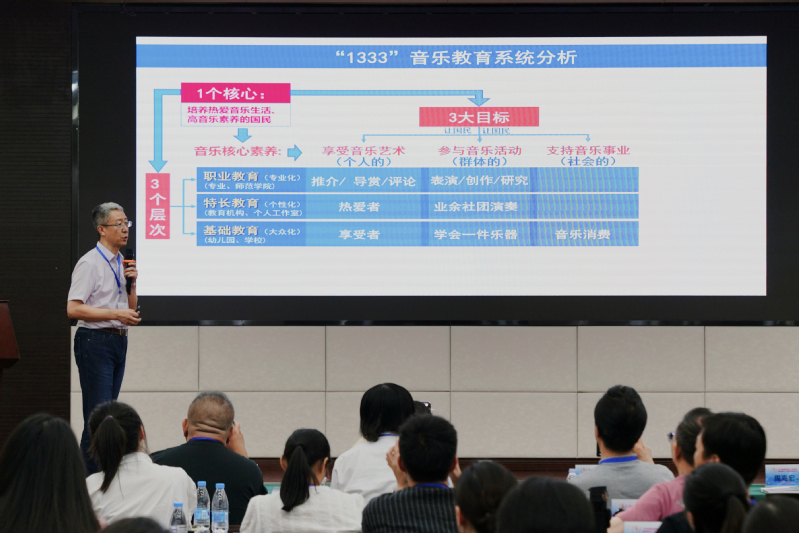 来自福建师范大学博导王耀华教授分享了题为《应用型音乐人才的基本素质及其培养》,概述了应用型音乐人才的基本素质和特点,提出在传承性的基础上吸收外来因素。他强调所有音乐教育从业者要热爱自己所从事的应用型音乐事业,具备一定的音乐理论基础和实践技能,能够克服一切困难,忠于人民音乐事业。
