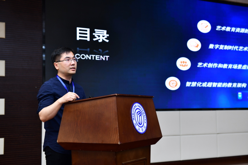 高等教育出版社人文社科学术事业部副主任、编审,博导蒋文博教授分享了《人工智能时代的艺术创作研究与传承》,提出建设首批高校在线教学国际平台、艺术与设计,他认为应用型人才培养需要遵循中国质量和国际标准。