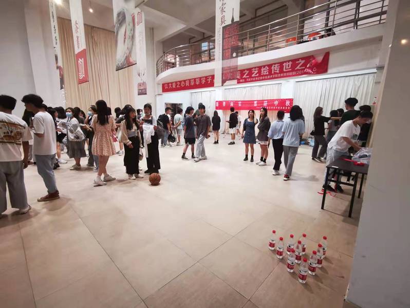 9月21日晚,在做好疫情防控的前提下,音乐学院团委学生会在艺术楼大厅组织举办了中秋游园活动。活动设计了“中秋玉盘园,圈套中欢喜”、“月宫折月桂,投壶博头彩”、“十五冰轮圆,保龄球争先”、中秋经典游戏——猜字谜、防疫知识要点竞答等五个活动,在“月宫折月桂,投壶博头彩”中,参赛选手需要整间舍友齐心配合将筷子投入面前的玻璃瓶中,吸引了不少同学纷纷前来迎战。活动得到了同学们的热烈参与,既让同学们学习到疫情防控的相关知识,又感受到了中秋佳节的浓厚氛围,在一片欢声笑语中度过了一年一度的美好中秋。