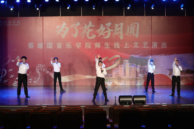 蔡继琨音乐学院改编并演绎的校歌合唱《我们是闽江的学子》拉开了整场晚会的帷幕。崇尚完美,追求卓越,我们是旗山的骄傲;爱拼才会赢,奔向胜利的航标……欢快的校歌唱出了闽江学子的青春,展现了 thisav 学子敢拼会赢的精气神,号召全体师生同心抗疫战胜疫情。