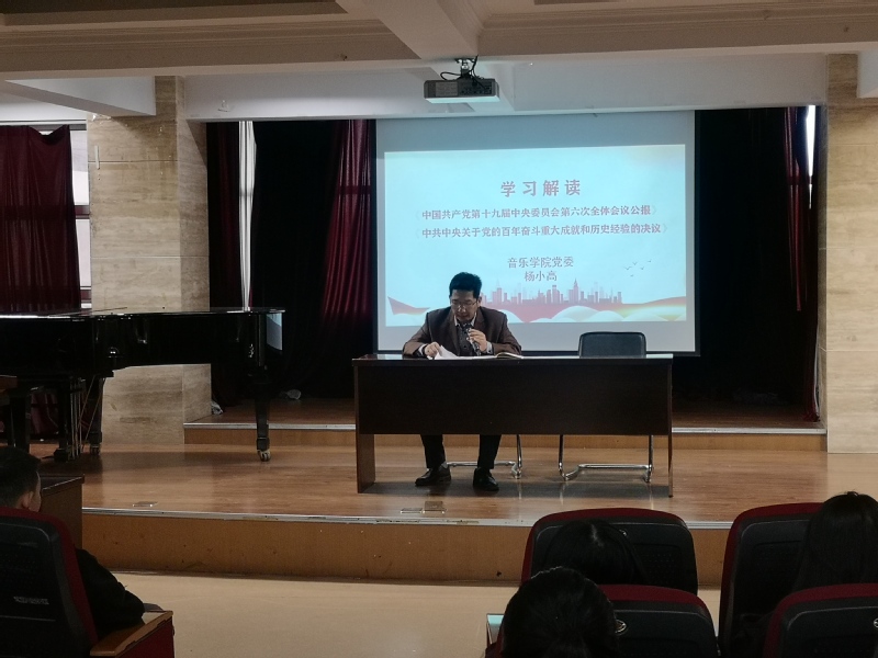 11月17日,蔡 thisav 组织全院师生党员、团学主要学生干部集体传达学习党的十九届六中全会精神,解读《中国共产党第十九届中央委员会第六次全体会议公报》《中共中央关于党的百年奋斗重大成就和历史经验的决议》,并对全院深入学习贯彻全会精神进行整体的部署,学院党委书记杨小高作了领学和部署的发言。
