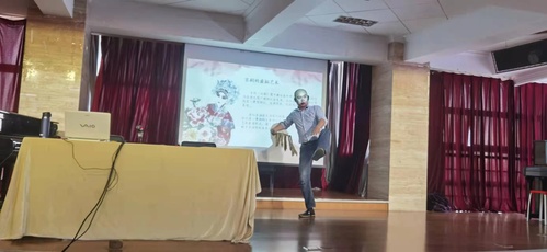 讲座从张飞飞先生自己的演艺经历开始讲起,用一张张剧照、一个个造型,代入京剧中“丑角”的特点和类别。张飞飞先生在讲座中展示了两段京剧中的念白,分别出自《膏药章》中的报药名和《法门众生相》中贾桂的念白,精彩的内容和扎实的功底赢得了学生们热烈的掌声。