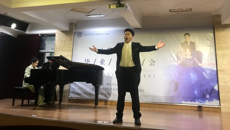 第三场景叶梦佳同学演绎《敕勒川》这首创作歌曲是在北朝民歌《敕勒歌》的基础上进行填词和谱曲而成的。该作品不仅深刻地表达了北朝民歌《敕勒歌》中描绘的我国古代游牧民族豁达、乐观以及豪迈的民族气节,在新词的表达中又增加了我国北方游牧民族虔诚、圣洁的民族信仰。同时,在古今结合中更是共同描绘了草原壮美辽阔的自然风光以及亘古不变的民族精神。接着《等上一辈子》选自大型民族歌剧《沂蒙山》,由王晓岭、李文绪作词,栾凯作曲, 此曲描绘了八路军打了胜仗回到崖子村,村民们热热闹闹地迎接他们,海棠盼望可以见到丈夫林生,但却得知林生为掩护村民不幸去世的消息的情景。最后演唱了作品音乐剧《星》的选曲《轻轻推开一扇窗》,这是一首现代的中国艺术歌曲。