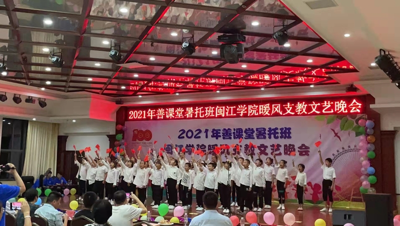 多场域宣传。组织师生利用周末、寒暑假,以志愿服务、社会实践形式,深入周边社区、中小学、走进乡村,开展红歌传唱支教、红色文化研学、庆祝建党百年文艺演出,多场域开展党史学习宣传活动。先后走进上街侯官小学指导 “庆建党百年班班有歌声”合唱比赛、赴仓山区金洲社区指导社区童声合唱团开展“童心向党 乐脉榕城”合唱表演、赴永泰县葛岭镇、屏南县棠口村、寿宁县下党乡等地开展红色文化研学活动,在屏南县举办“庆祝建党百年暨暖风支教文艺晚会”专场演出,在校外积极开展党史宣传活动。
