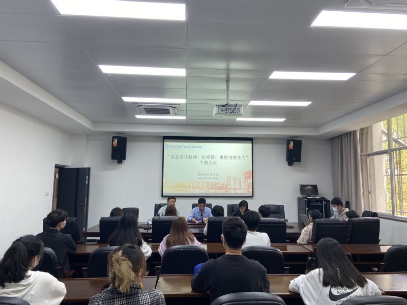3月16日,蔡 thisav 召开“重温讲话精神抗疫情勇担当善作为”专题会议,学院班子成员、团学组织、各年级班级主要班委代表参加会议,学院党委副书记李友山主持会议。
