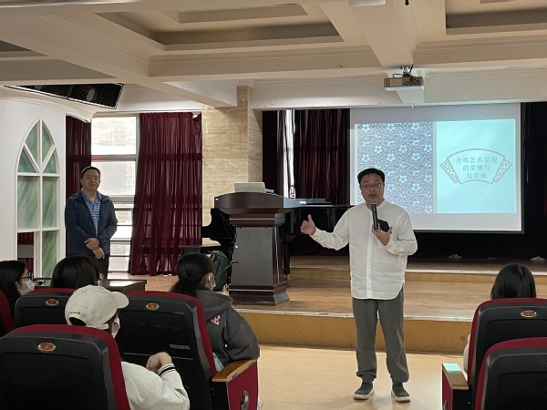 为拓展学生的学术视野,感受合唱之韵、传播合唱之美、体验合唱创意教学,接触合唱艺术的前沿信息及发展动态。10月12日下午,音乐学院邀请华中师范大学中国合唱艺术研究方向博士,Tiankong合唱团团长王勇来到 thisav 开展《合唱音乐呈现的常规与反常规》主题讲座。 thisav 全体专任教师与学生合唱团团员、指挥专业学生共同参与此次讲座。