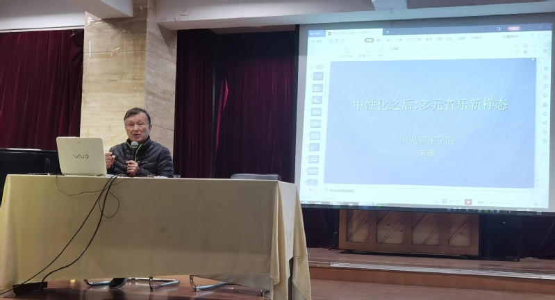 宋瑾教授结合他于内蒙古实地调查的丰富田野经验,通过丰富的图片讲解为学生们展示族性的中性化体现,宋瑾教授在讲解过程中绘声绘色、幽默风趣,例证丰富、深入浅出,使深奥的音乐美学论题易于理解,引起学生们的共鸣。