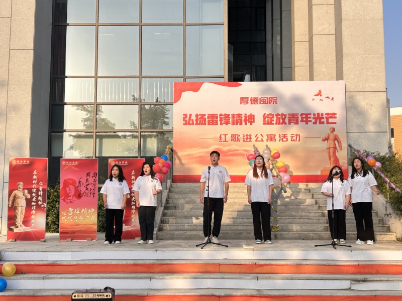 学院文艺宣传小分队于3月5日傍晚走进三创大楼前的广场,开展了红歌进公寓暨学习雷锋精神宣传活动。一首首经典红歌《唱支山歌给党听》《不忘初心》《走进新时代》《山河唱出好兆头》等以独唱、小组唱等形式在广场前唱响,吸引了过往的同学驻足聆听,观众不时为台上表演的同学叫好,整场演出在合唱《学习雷锋好榜样》歌声中落下帷幕,让人意犹未尽。