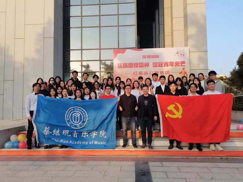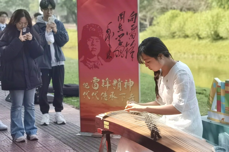 3月3日,蔡 thisav 的志愿者们发起“奏响经典,学习榜样”的主题活动,他们利用课间时间在校内的青芝河畔、教学楼长廊等地,通过古筝、竹笛、琵琶、马头琴、小提琴等乐器深情演绎着这首传唱了60年的经典歌曲,用悠扬的乐器声号召广大青年学习雷锋精神,传承中华美德,用实际行动书写新时代的雷锋故事。