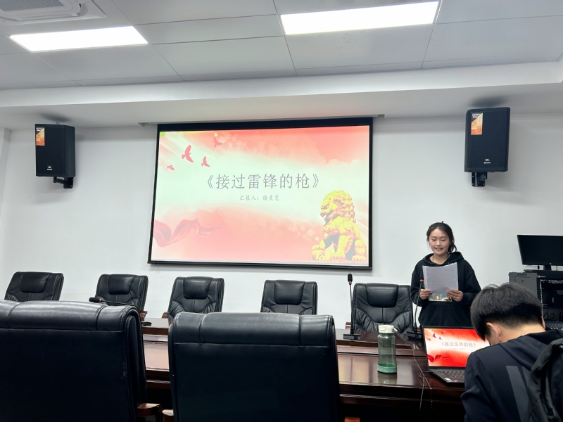 徐灵芝同学为大家分享了雷锋同志的故事。她通过歌曲《接过雷锋的枪》,向同学们讲述了雷锋精神,并分享了张立涛与“雷锋班”的故事,用真实的事件感动大家,并号召大家以雷锋精神为导向,将雷锋精神融入到每一天的生活中,为建设和谐社会贡献自己的力量!