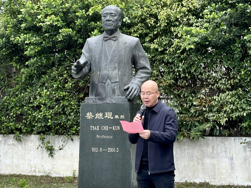 仪式上,参加纪念活动的师生代表有序地向蔡继琨教授塑像献花鞠躬,真诚地表达了对蔡继琨先生的敬仰和追思。纪念仪式结束后,师生一同参观了蔡继琨教授纪念馆。