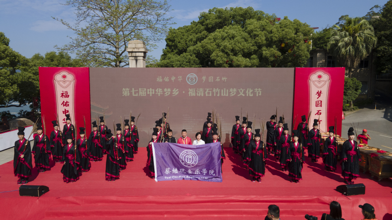 2023510日,第七届中华梦乡•福清石竹山梦文化节在福清市石竹山举办。蔡 thisav 刘淘副院长和佾舞传承示范基地的佾生32人受福清市文化体育和旅游局邀请参加开幕式并进行现场展演,通过国家级非遗佾舞的独特表现形式,展示了闽台两岸薪火相传不断的民族基因和文化血脉。佾舞礼乐在促进中华民族文化认同,维护祖国统一、增强社会凝聚力中始终发挥着积极的作用。