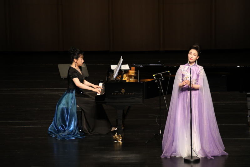 本场音乐会共演绎了《春望》《望月远怀》等15首艺术歌曲,作品以中国传统文化典范为切入点,跨越先秦、唐宋、明清等朝代的千年文化长河,饱含家国担当、人文历史、挚爱难忘、理想抱负等丰富情怀,配以丰富多变的钢琴伴奏和特色乐器,借鉴西方艺术歌曲的形式,并融入中国传统戏曲、流行、花腔等不同元素的音乐风格,给人带来耳目一新的视听体验,通过古今对话的艺术形式,构建“有声有色、有情有景”的艺术意境。音乐会上在每首作品表演前还安排了讲解环节,由刘瑾昱老师讲解该作品的创作构思、演绎方法等,让现场的普通观众更为直观的感受古诗词与艺术结合的美好。在15首歌曲中,陈国东教授、张波博士、黄佳楠博士、张铠麟博士、以及特邀的大提琴曹慧妍以及音乐学院青年合唱团完成其中的7个作品的献唱。