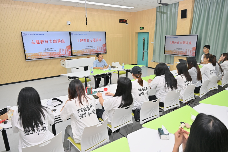 61日,校党委常委、副校长张建安赴蔡 thisav 讲授《自找苦吃,成才奋进,努力为全面建设社会主义现代化国家贡献青春力量》主题教育专题党课。2021级音乐学班级学生、年级辅导员、学院党委副书记张开全到场聆听了专题讲座。