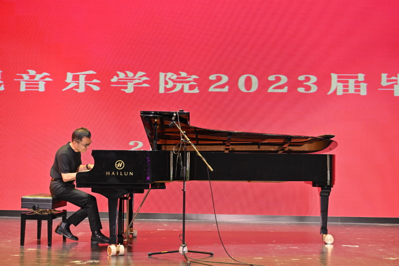 典礼上,福建省钢琴协会会长杨弋夫教授为同学们送上祝福并献上演绎弗朗茨·李斯特钢琴曲《爱之梦》,希望同学们带着这份爱奔跑在充满光荣和梦想的新征程上。学生代表江宝鹏、李泽茜共同演绎歌曲《致友人》,祝福学长学姐顺利毕业,希望学长学姐们常回家看看。