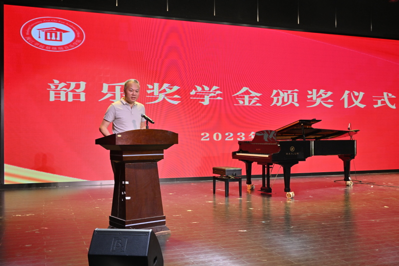 (学院老师为学生颁发韶乐奖学金)