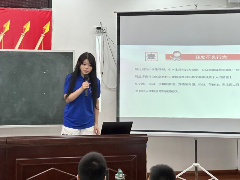 祖国在我心中,法律伴我成长。在法治教育小课堂中,为了了解孩子们对法律的认识程度,支教队员王欣瑞用问答的方式为普法课程拉开帷幕,她用身边大家所了解的事件引入主题,让小朋友思考正确的做法,告诉小朋友们什么是法律及其重要性,引导小朋友们“知法”“守法”“用法”。并详细地介绍了未成年人保护法,小朋友们结合自己在生活中遇到的问题进行提问,让自己的问题得到了解答,进一步了解如何维护自己的合法权益,争做守法小公民。