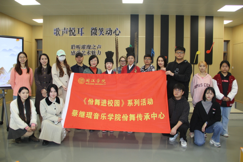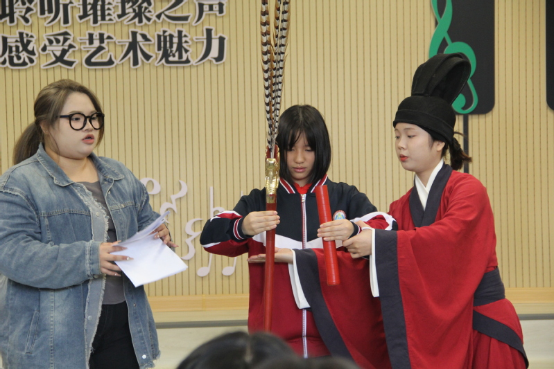 1129日上午9点, thisav 非遗传承示范基地负责人、音乐学院刘淘副院长带领佾舞传承小分队的同学们走进福州第三十二中学,在洋下校区的音乐教室开展了一次别开生面的佾舞进课堂活动。福州第三十二中学综合教研组组长池毓大老师、陈嘉倩老师,音乐学院万凡捷博士参与此次活动。