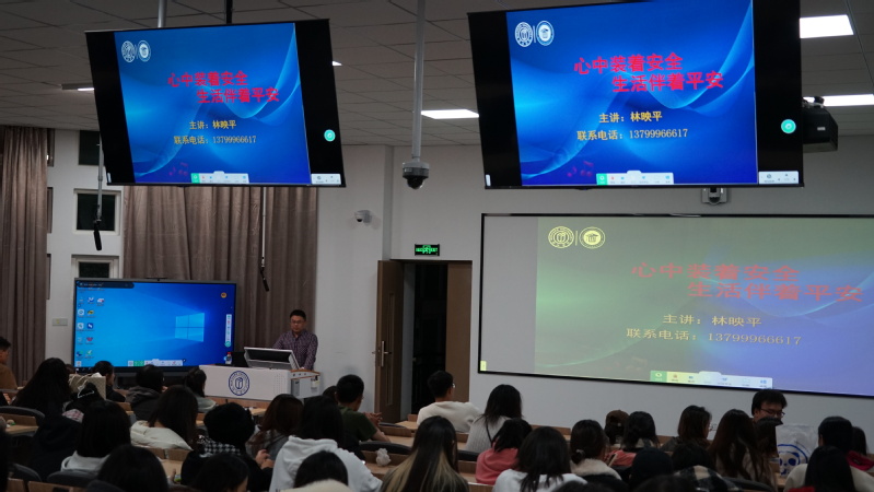 林映平副书记从人身财产安全、交通安全、食品安全、消防安全等四个方面,结合近几年大学校园案例,全面系统地为新生上了一堂安全教育课。通过生动详实的案例,让同学们了解生活中可能存在的安全隐患,例如校园电动车交通事故、防不胜防的校园盗窃事件、稍不注意就会引发的火灾等,为同学们扣好安全生活的“第一粒扣子”。