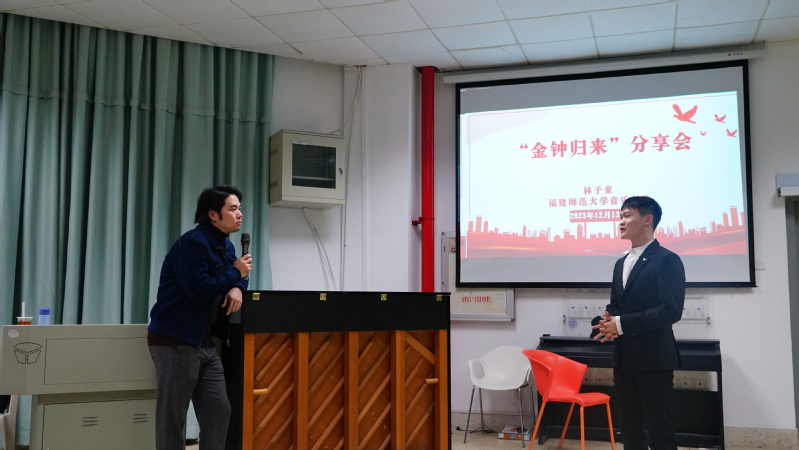 为深入推进书香闽院建设,提升学院师生专业水平,培养应用型人才,2023年12月13日,蔡 thisav 于融侨合唱教室举行“金钟归来”分享会,讲座特邀第十四届中国音乐金钟奖声乐(美声)比赛总决赛第一名获得者、福建师范大学青年教师林子豪主讲,学院声乐教研室相关老师和学生代表共同参加。讲座由学院副院长刘淘主持。