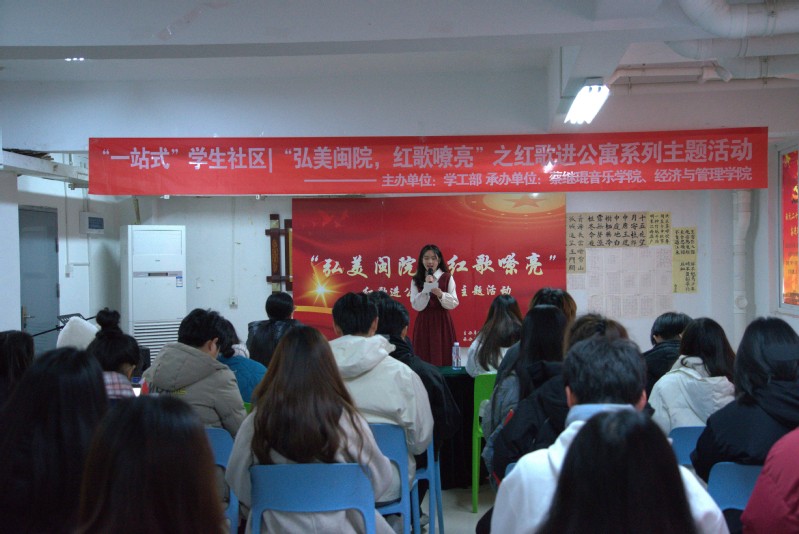 为深入贯彻党的二十大精神,深学细悟党的创新理论,弘扬伟大建党精神,践行五育闽院,从党的百年奋斗重大成就和历史经验中增长智慧,增强信心,用青春唱响“强国复兴有我”的时代强音,12月20日下午,校学工部宿舍管理与服务中心联合音乐学院、经管学院在三区三易起学吧开展主题为“弘美闽院,红歌嘹亮”的红歌进公寓活动。