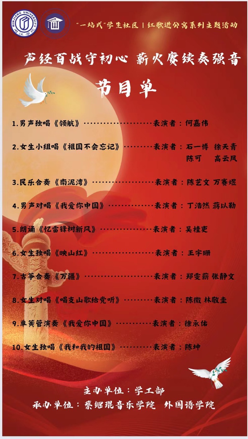活动预告|“声经百战守初心,薪火赓续奏强音”之红歌进公寓系列主题活动