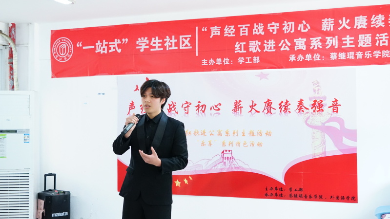 为深入学习贯彻党的二十大精神,积极推进学习贯彻习近平新时代中国特色社会主义思想主题教育在校园内走深走实,围绕“五育闽院”“一站式学生社区”“七个百”等要求,2024320日下午,校学工部宿舍管理与服务中心联合音乐学院、外国语学院在一区二易起学吧开展主题为“声经百战守初心 薪火赓续奏强音”的红歌进公寓活动。