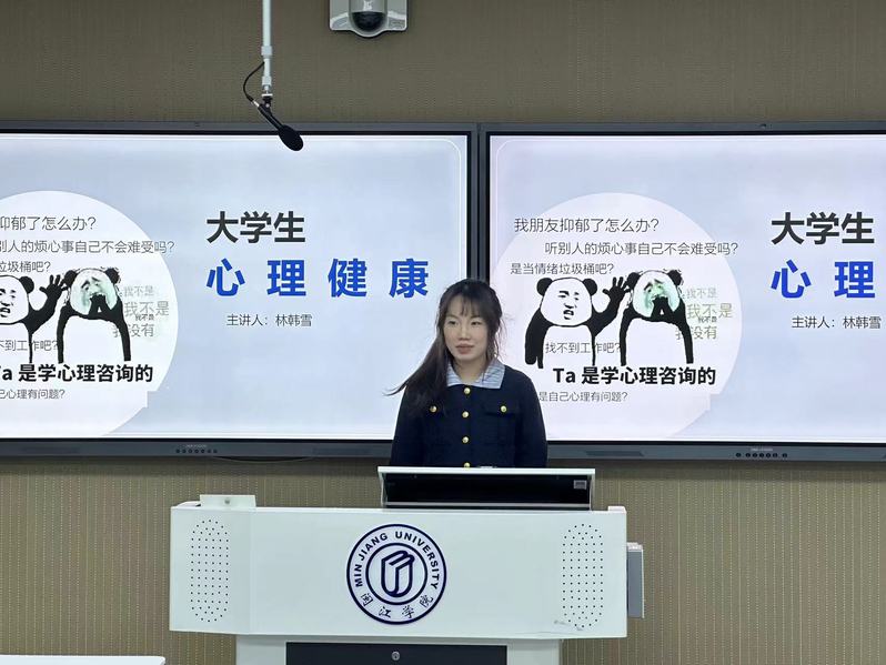 讲座开始,林韩雪指出随着社会竞争的加剧和学业压力的增大,高校学生的心理压力问题日益突出。她通过详细的数据和图表展示了近年来大学生心理问题的发展趋势,以及影响学生心理健康的主要因素,如就业压力、人际关系、学习负担等。通过通俗易懂的语言为同学们引入了心理健康的基本概念,强调了心理健康教育的重要性。她指出,心理健康不仅仅是没有心理疾病,更包括良好的情绪管理、压力应对能力、人际关系处理以及自我认知等方面。
