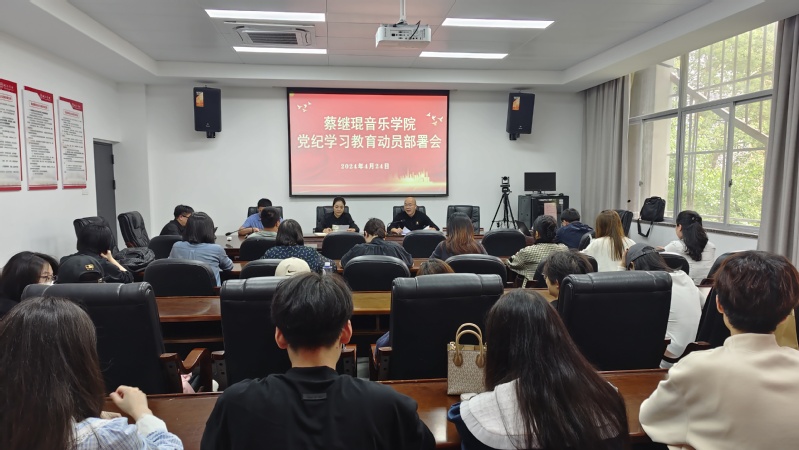 为进一步开展好党纪学习教育,4月24日下午,蔡继琨音乐党委召开党委扩大会议动员部署学院党纪学习教育工作,学院师生党员参加了会议,会议由党委副书记张开全主持。