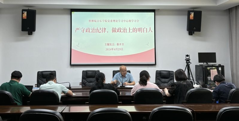 4月29日,蔡 thisav 党委召开理论学习中心组学习会,学习研讨新修订的《中国共产党纪律处分条例》(以下简称《条例》),学院党委副书记张开全作重点发言。