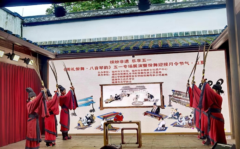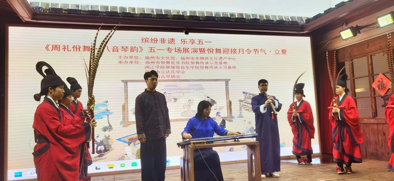 2024年5月1日,蔡 thisav 与福州市佾舞礼乐书院、福清市古琴协会、福清市立达孔学会共同承办福州市文化馆、福州市非物质文化遗产中心举办的“缤纷非遗乐享五一”五一展演活动。 thisav 周伟老师组织带队2021级与2023级8位学生参加了本次迎接立夏节令的专场展演。其中佾生6名,另有2名学生演唱古诗词,学生们以所学的佾舞展示传统文化中月令,同时,专业实践能力也得到了提高。