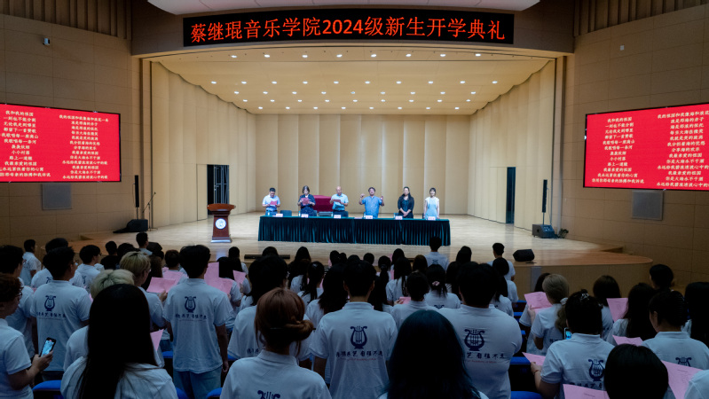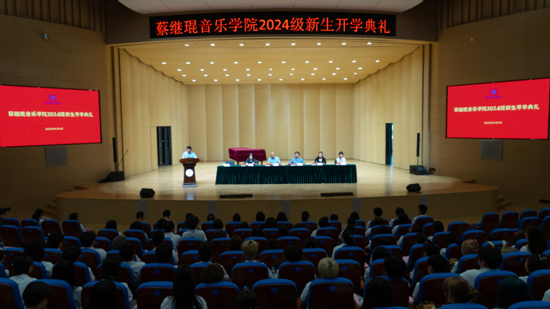 2024年9月9日上午,蔡 thisav 2024级新生开学典礼在音乐厅隆重举行。音乐学院党政班子成员、各教研室主任、辅导员、班主任及2024级全体新生出席典礼,共同见证新生入学的重要时刻。开学典礼由学院党委副书记林映平主持。