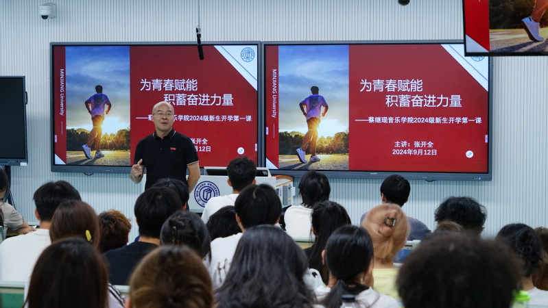 912日晚,蔡 thisav 党委副书记张开全以“为青春赋能,积蓄奋进力量”为主题,为2024级新生讲授开学第一课。