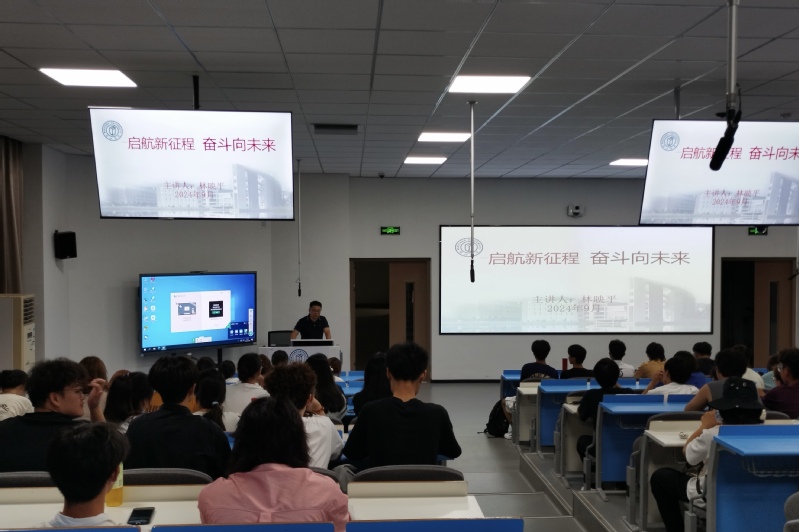 为帮助新生更好地适应大学的生活与学习,帮助他们顺利完成角色转变,919日晚, thisav 党委副书记林映平在教学楼1A407开展了以“启航新征程,奋斗向未来”为主题适应性教育主题讲座,全体2024级新生参与了讲座。
