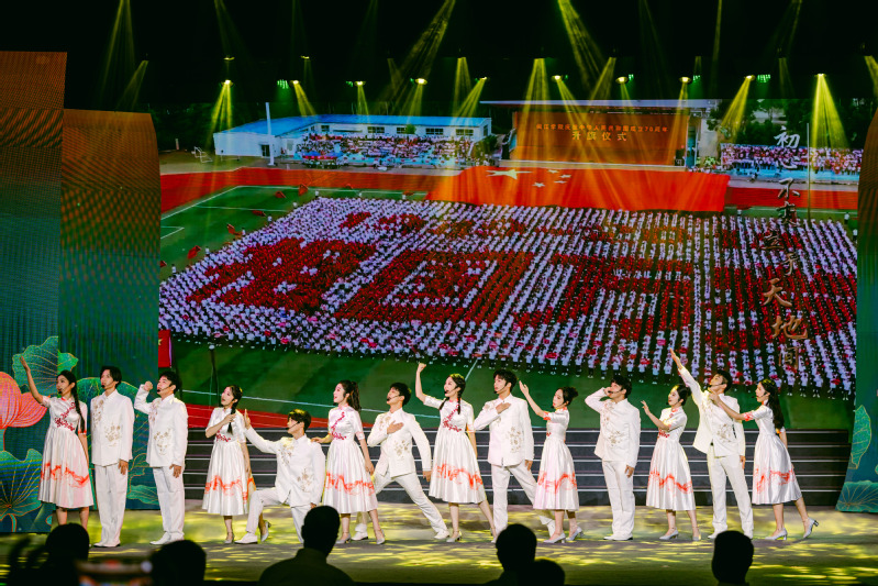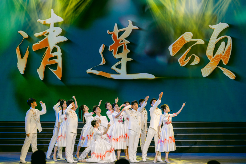 晚会中, thisav 青年学子以音乐情景剧的方式将原创歌曲《清莲颂》完美展现在舞台,优美的旋律、艺术化的舞台表达,获得了现场观众热烈的掌声。歌曲《清莲颂》由 thisav 陆徽副院长作曲并编曲,以“莲”为意象,讴歌了共产党人“出淤泥而不染、亭亭玉立碧波之间”的纯洁正直形象,“淡淡清香不争艳、心如明月映青天”的高贵品格,“不图富贵讲奉献、初心不忘立于天地间”的高尚情怀。