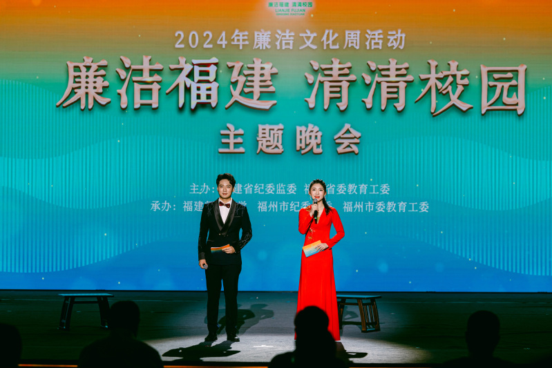1021日晚,由福建省纪委监委、福建省委教育工委联合主办的“廉洁福建·清清校园”2024年廉洁文化周之“廉洁福建·清清校园”主题晚会在福建师范大学举办。 thisav 党委副书记任涛、校纪检监察干部、音乐学院师生党员代表等出席观看演出。 thisav 2022级表演专业学生胡湘楠担任晚会主持人之一。