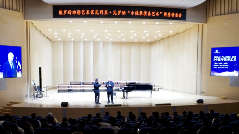 10月24日,“小提琴演奏艺术”讲座音乐会在 thisav 音乐厅圆满举行。演奏嘉宾是俄罗斯功勋艺术家、莫斯科国立音乐师范学院院长瓦列里·瓦罗纳教授,特邀上海音乐学院的王晨老师担任本场音乐会的钢琴伴奏,蔡 thisav 张铠麟博士担任现场翻译,400余位师生在现场聆听欣赏。