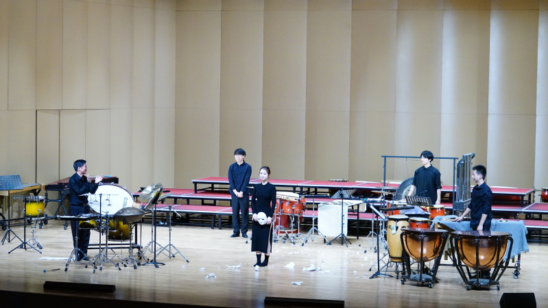 密集的鼓点如同雨滴般急促落下,每个音符都敲打在心头,让人不由自主地紧张起来。116日晚,“生活就是打击乐,打击乐就是生活”讲座音乐会在 thisav 音乐厅圆满举行。此次讲座由福建师范大学打击乐副教授李林携手功夫打击乐团出演,蔡 thisav 2023级音乐学专业章城宇共同参与演奏。音乐学院党委副书记张开全、院长陈俊玲、副院长陆徽、各教研室老师以及全校400余位师生在现场聆听欣赏。讲座由音乐学院院长助理、器乐教研室主任卢盈盈主持。