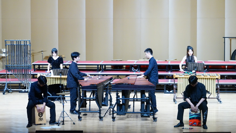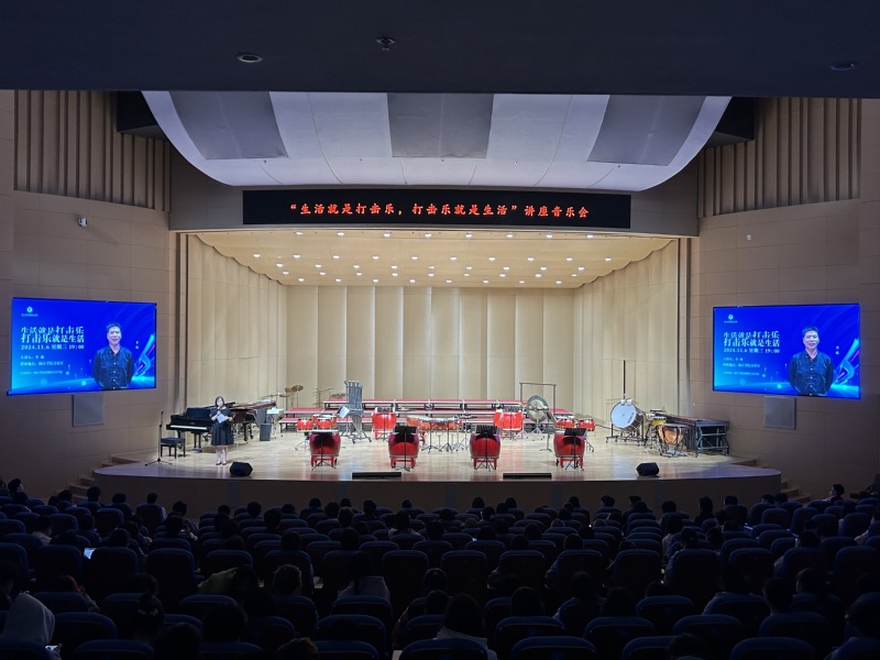 密集的鼓点如同雨滴般急促落下,每个音符都敲打在心头,让人不由自主地紧张起来。116日晚,“生活就是打击乐,打击乐就是生活”讲座音乐会在 thisav 音乐厅圆满举行。此次讲座由福建师范大学打击乐副教授李林携手功夫打击乐团出演,蔡 thisav 2023级音乐学专业章城宇共同参与演奏。音乐学院党委副书记张开全、院长陈俊玲、副院长陆徽、各教研室老师以及全校400余位师生在现场聆听欣赏。讲座由音乐学院院长助理、器乐教研室主任卢盈盈主持。