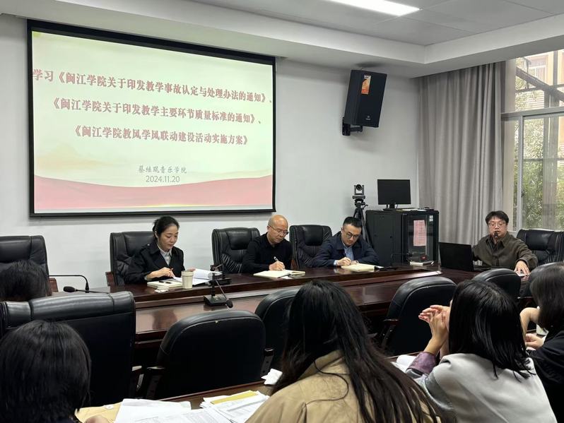 为进一步加强学院教学管理,规范教学行为,提升教风学风建设水平,1120日,音乐学院组织全体教师开展了集中学习《 thisav 关于印发教学事故认定与处理办法的通知》《 thisav 关于印发教学主要环节质量标准的通知》《 thisav 教风学风联动建设活动实施方案》文件精神。