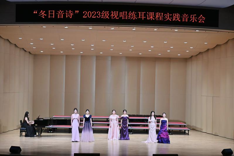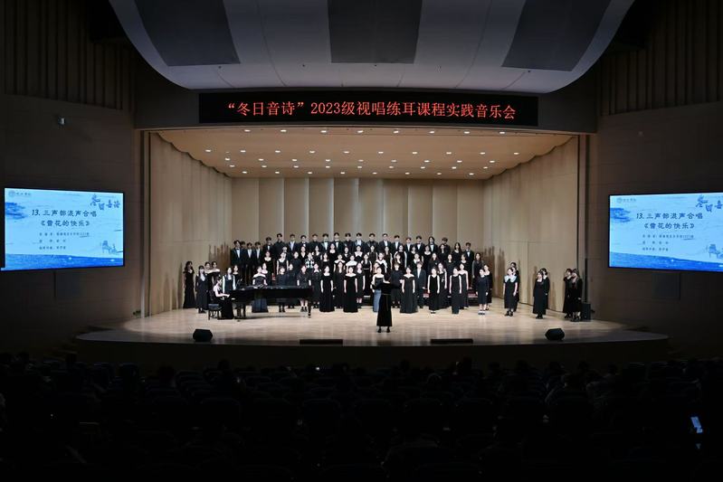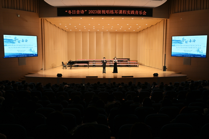 2024年12月4日晚,音乐学院“冬日音诗”2023级视唱练耳课程实践音乐会于 thisav 新音乐厅圆满举办。本场音乐会为蔡 thisav 专业必修课《乐理与视唱练耳》的教学实践成果汇报展示,是音乐学院首场理论课程实践音乐会。蔡 thisav 党委书记张开全、院长陈俊玲、副院长陆徽、院长助理卢盈盈以及音乐学院各教研室的老师、全校各学院500名师生共同观看。本次演出由2023级音乐学(师范)专业周伊诺、唐岱维主持。